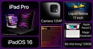 Kỷ nguyên sức mạnh mới của iPad Pro 2022 đã đến, sự góp mặt của chip Apple M2 cực mạnh giúp iPad Pro M2 đạt tới mức hiệu năng chưa từng có. Trên sản phẩm này, bạn sẽ thấy những công nghệ nổi bật như selfie toàn cảnh 122 độ, kết nối 5G và WiFi 6E, màn hình Liquid Retina sắc sảo cùng nhiều cải tiến mới trên Apple Pencil 2.