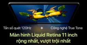 Màn hình 11 inch Liquid Retina của iPad Pro M2 2022 được gia tăng độ sáng lên mức 600 nits, công nghệ True Tone giúp dễ dàng chuyển đổi màu sắc hiển thị tùy theo bối cảnh ánh sáng môi trường, đảm bảo các khuôn hình luôn chân thật và dễ chịu với mắt.
