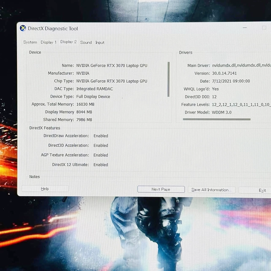 Màn 16″ Full tần số quét 240hz ko có độ trễ khi anh em kéo game nặngĐặc biệt trang bị Card Màn hình rời 3070 8gb GDDR6 mới nhất tốc đôn khủng + 8gb up from system memory , Total